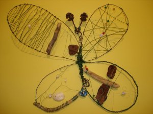 ‘jesenski leptir’ – žica, drvo, školjke, češeri