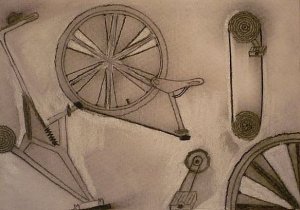 rekompozicija ‘bicikl’ – olovka i ugljen na papiru